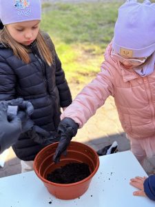 Podczas wsp贸lnego sadzenia rozmawiali艣my o wio艣nie, o tym jak ro艣liny rosn膮 i czego potrzebuj膮, aby pi臋knie zakwitn膮膰.